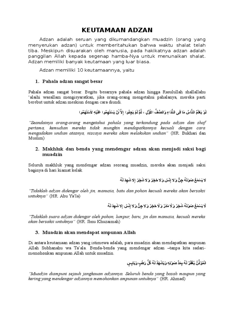 10 Keutamaan Adzan Dan Muadzin Docx