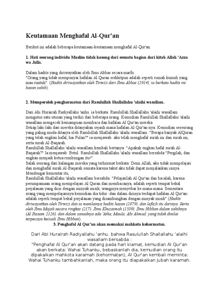 Keutamaan Menghafal Al Qur An Doc Document